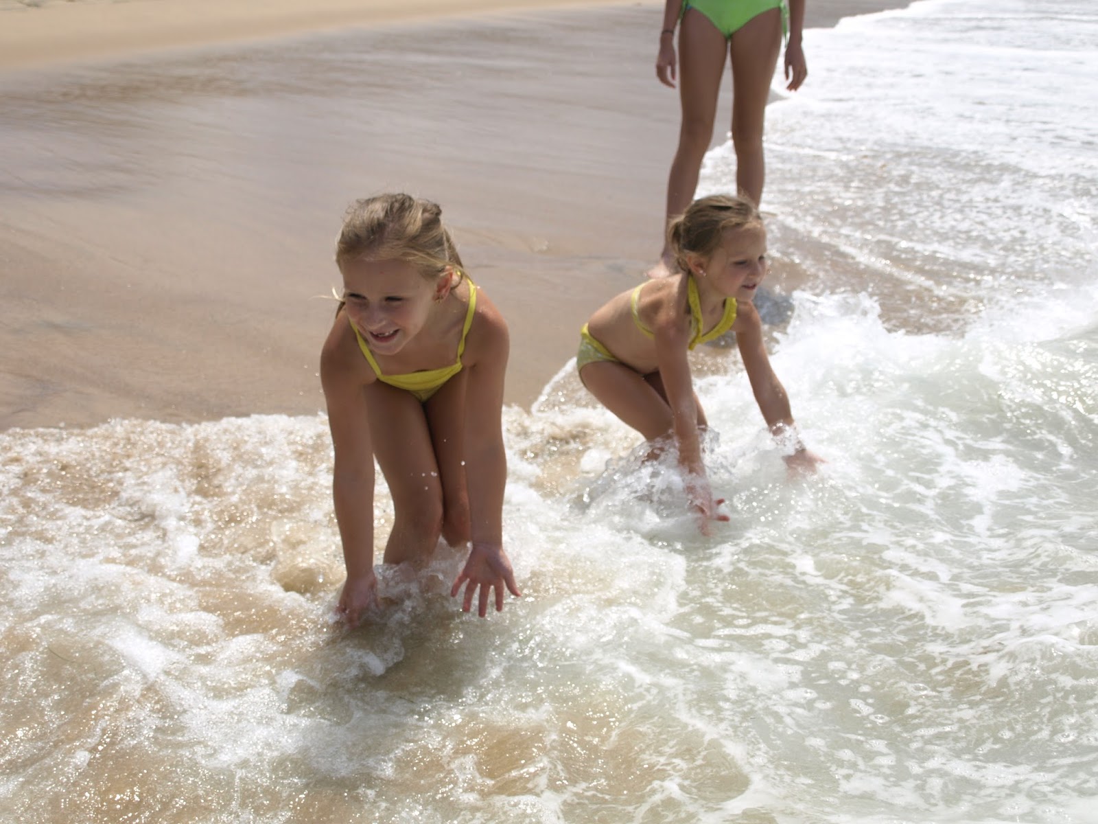 Katherine and Cailey buried Reece in the sand. She thought it was hysterical.